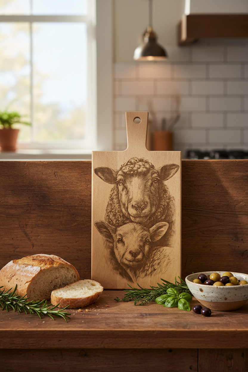 De eyecatcher voor in de keuken, deze prachtige schapen borrelplank