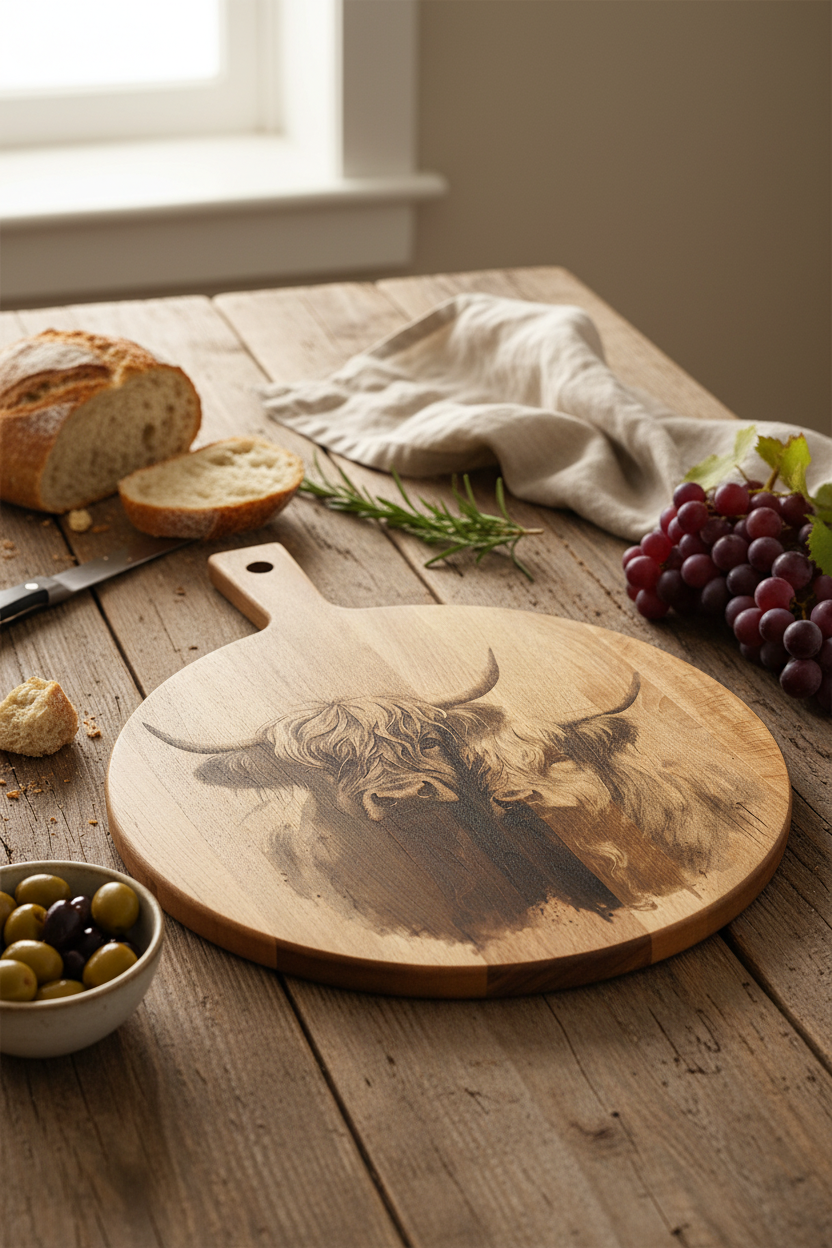 Ronde plank met 2 hooglanders